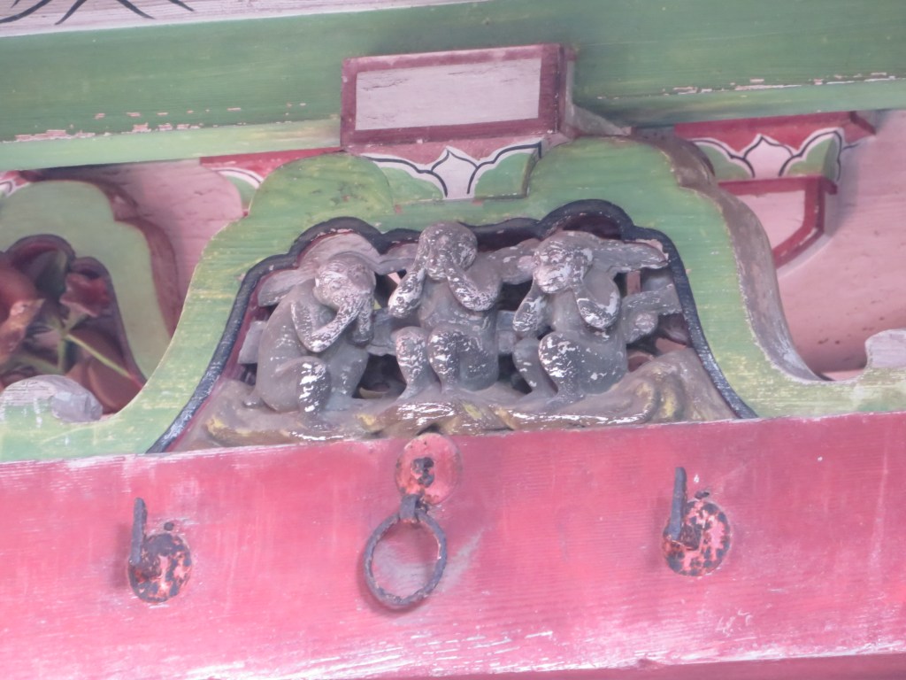 The seventeenth century construction was actually commissioned by Iemitsu’s father, Hidetada, but he died before the work could be completed. It was also Hidetada who started construction of Nikko’s famed Toshogu Shrine and, similarly, it was left to Iemitsu to finish the job. He used many of the same craftsmen for both projects. A prime example of this is the wood carving work. Look familiar?