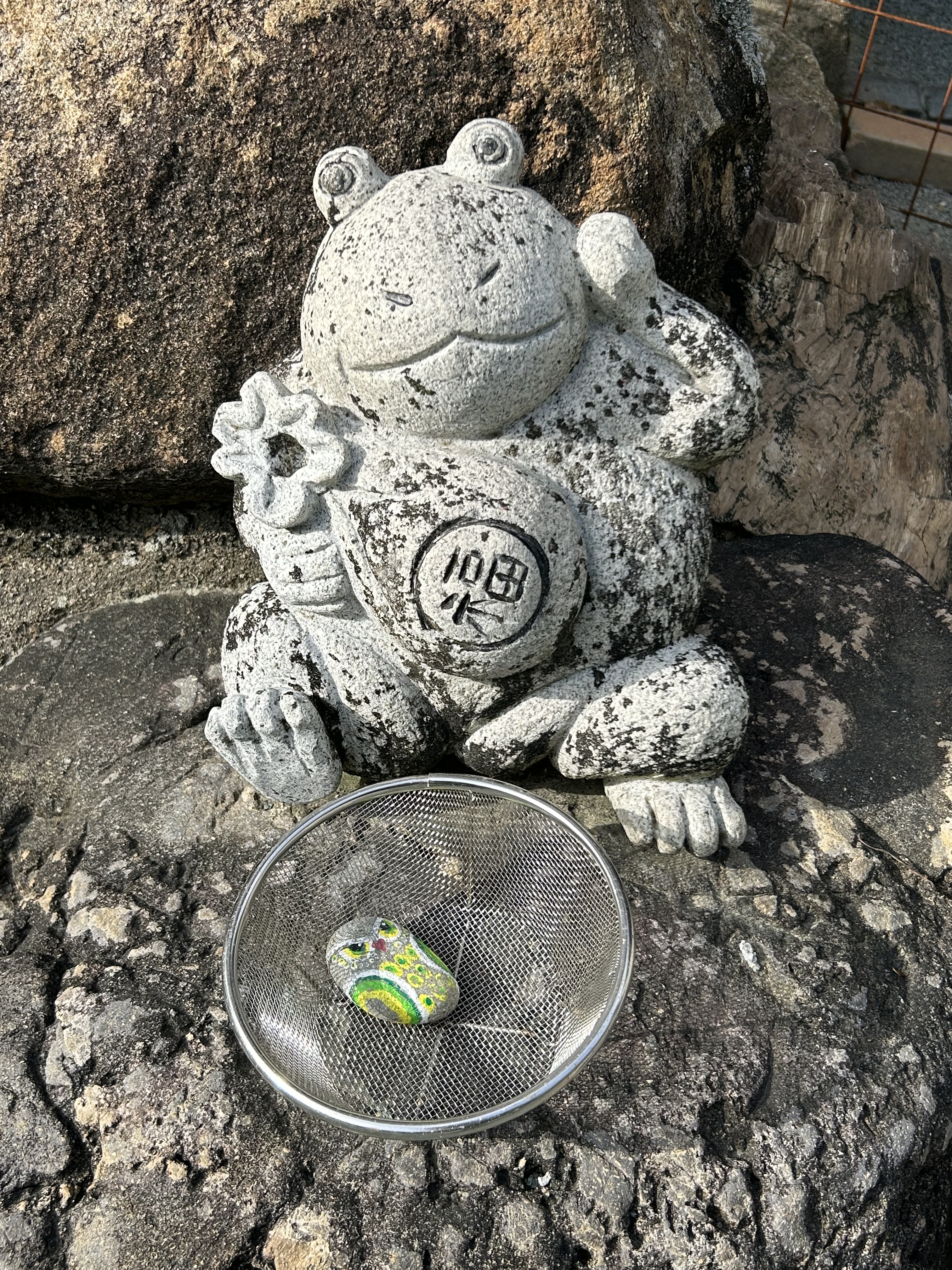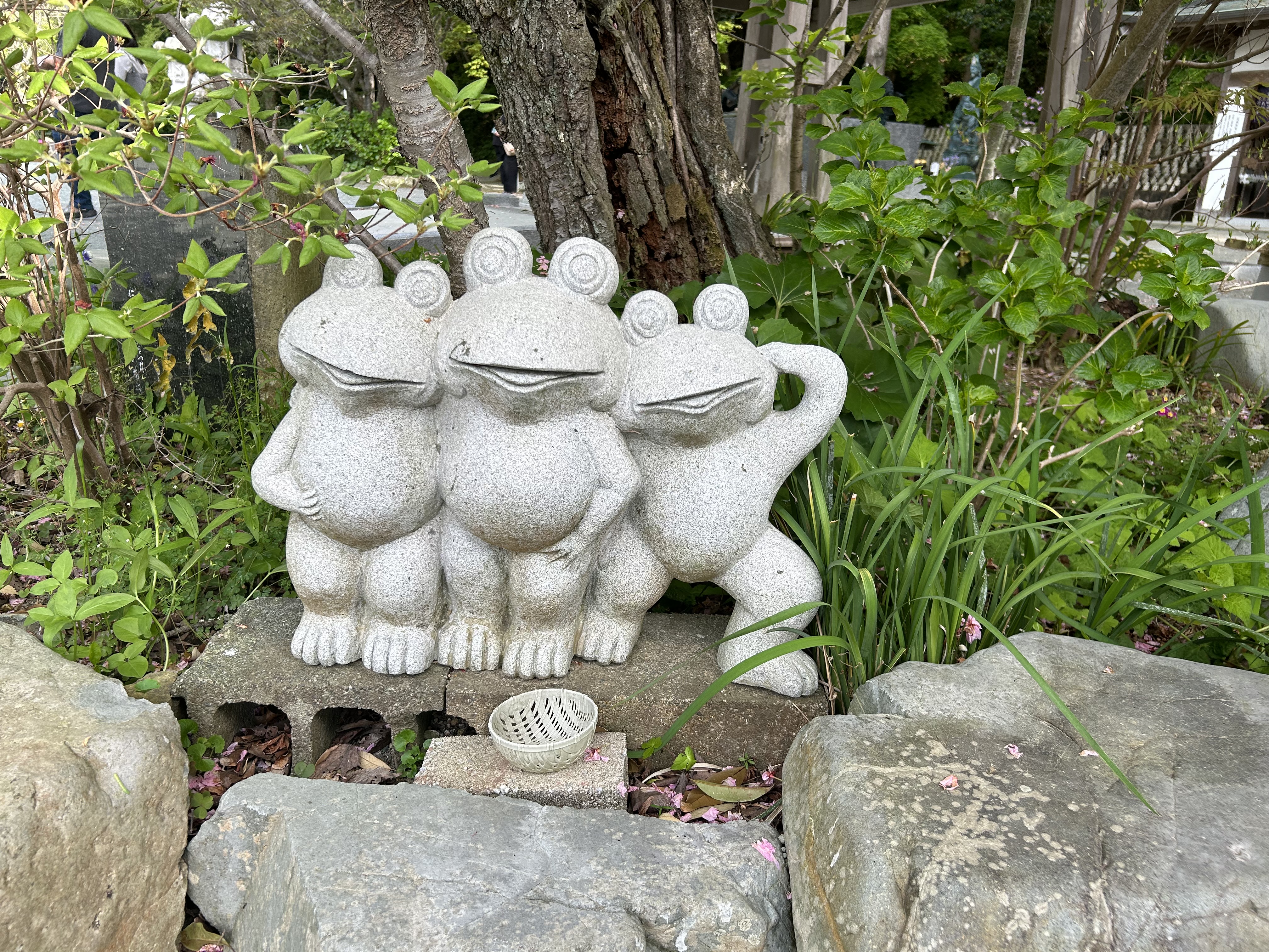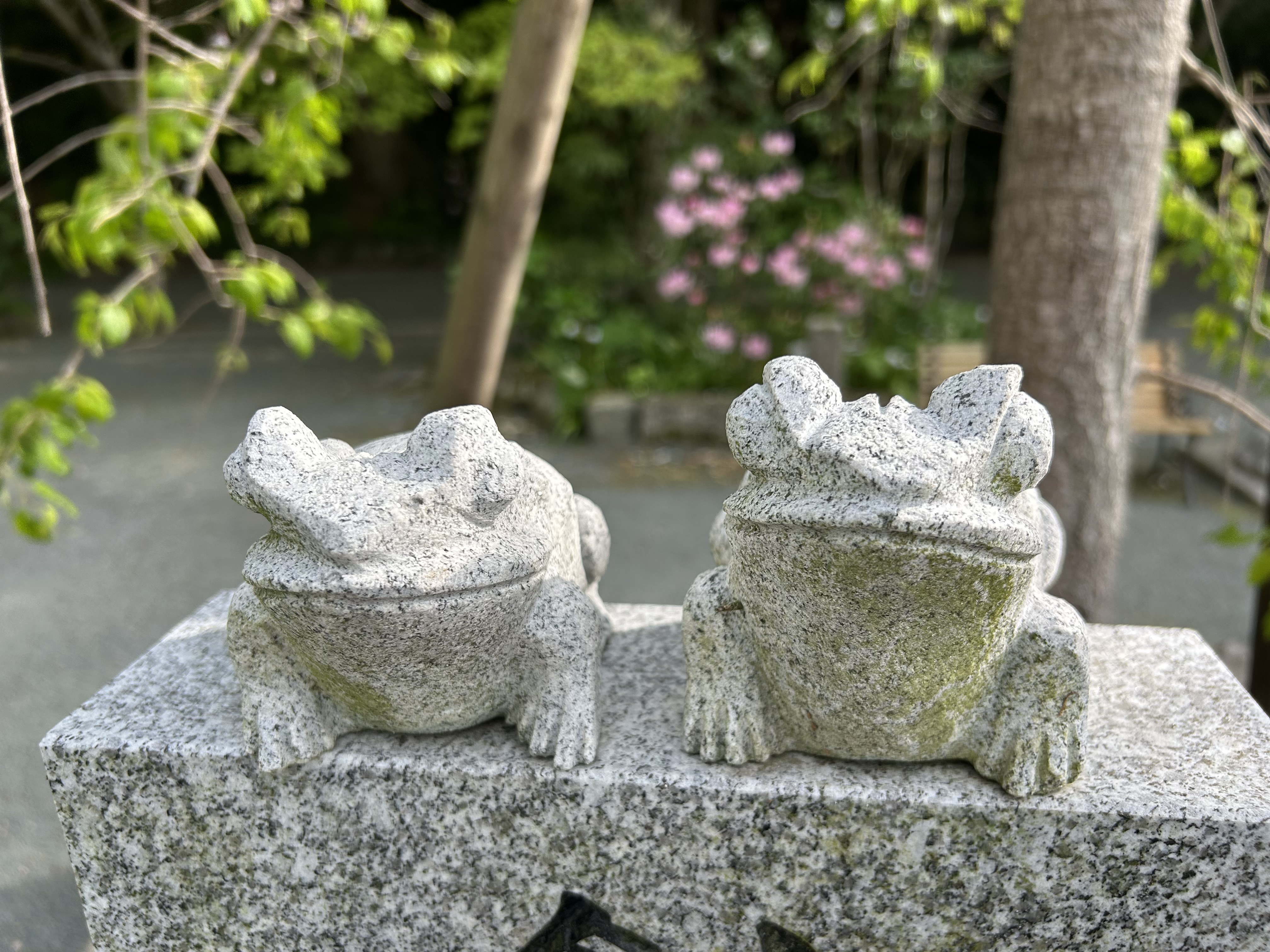Another distinctive feature of the temple courtyard is the proliferation of frog images. Frog images are not unusual, they are a visual representation of a pun: the word for “frog” sounds like the word for “to return”, so that an image of a frog is intended to evoke a “safe return”, whether from this place to one’s home or a return to this place again at some point in the future is unclear. I asked a number of people at the temple and no one could tell me for sure. It’s worth noting that the frog on the left below has the character for “fortune” on its round belly. Curiouser and curiouser.
